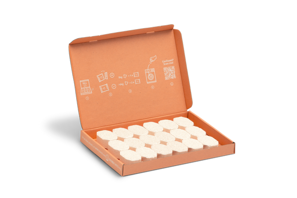 Instruction to use: Our tabs are water-soluble and work for cycle above 30 degrees. Simply place the tab in the washing drum without removing it from its packaging and start your usual program. That's it!